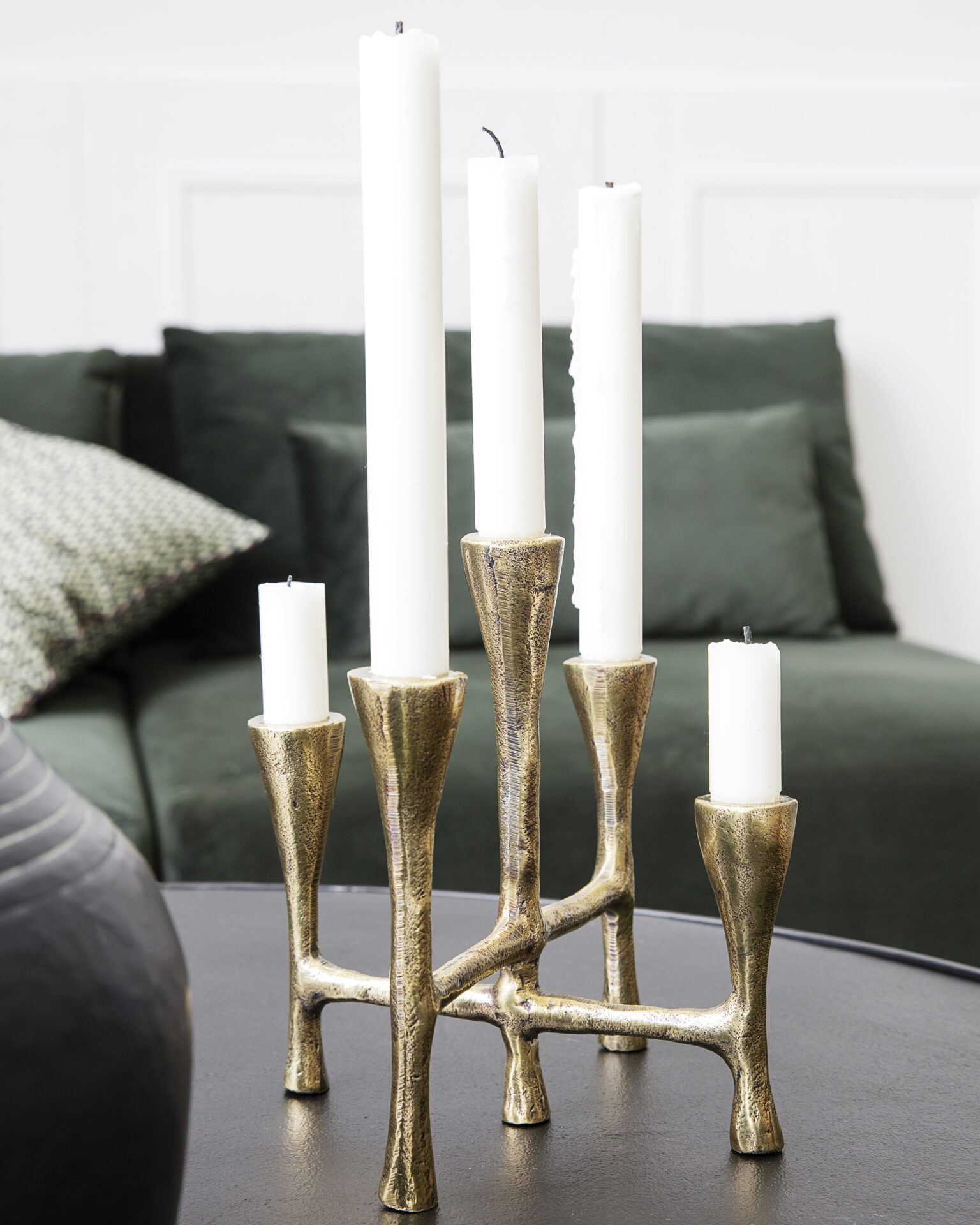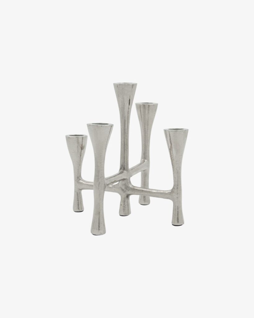 Le bougeoir TRISTY présente une finition en aluminium argenté avec de la place pour 5 bougies.